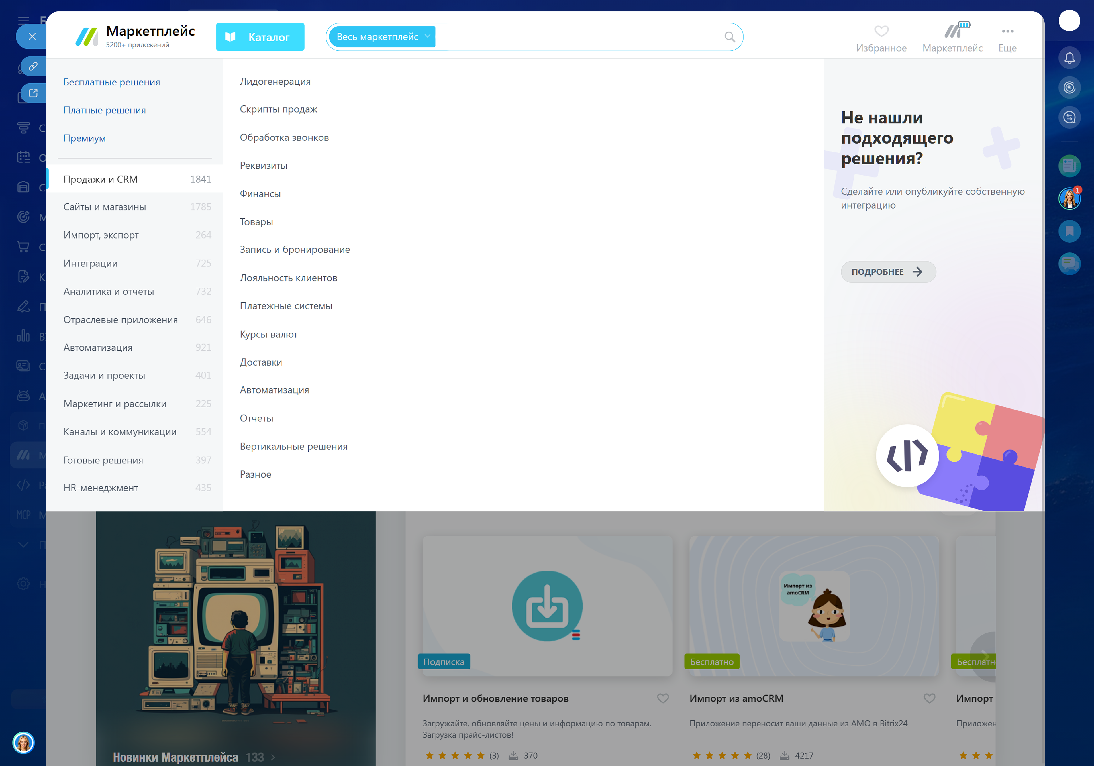 После Tilda я начал изучать Битрикс. Меня впечатлила функциональность. Платформа позволяет делать практически всё, от автоматизации заказов до настройки сложных бонусных программ и аналитики. Модульная структура, интеграция с маркетплейсами, CRM, отчётность — казалось, можно закрыть все задачи сразу.
