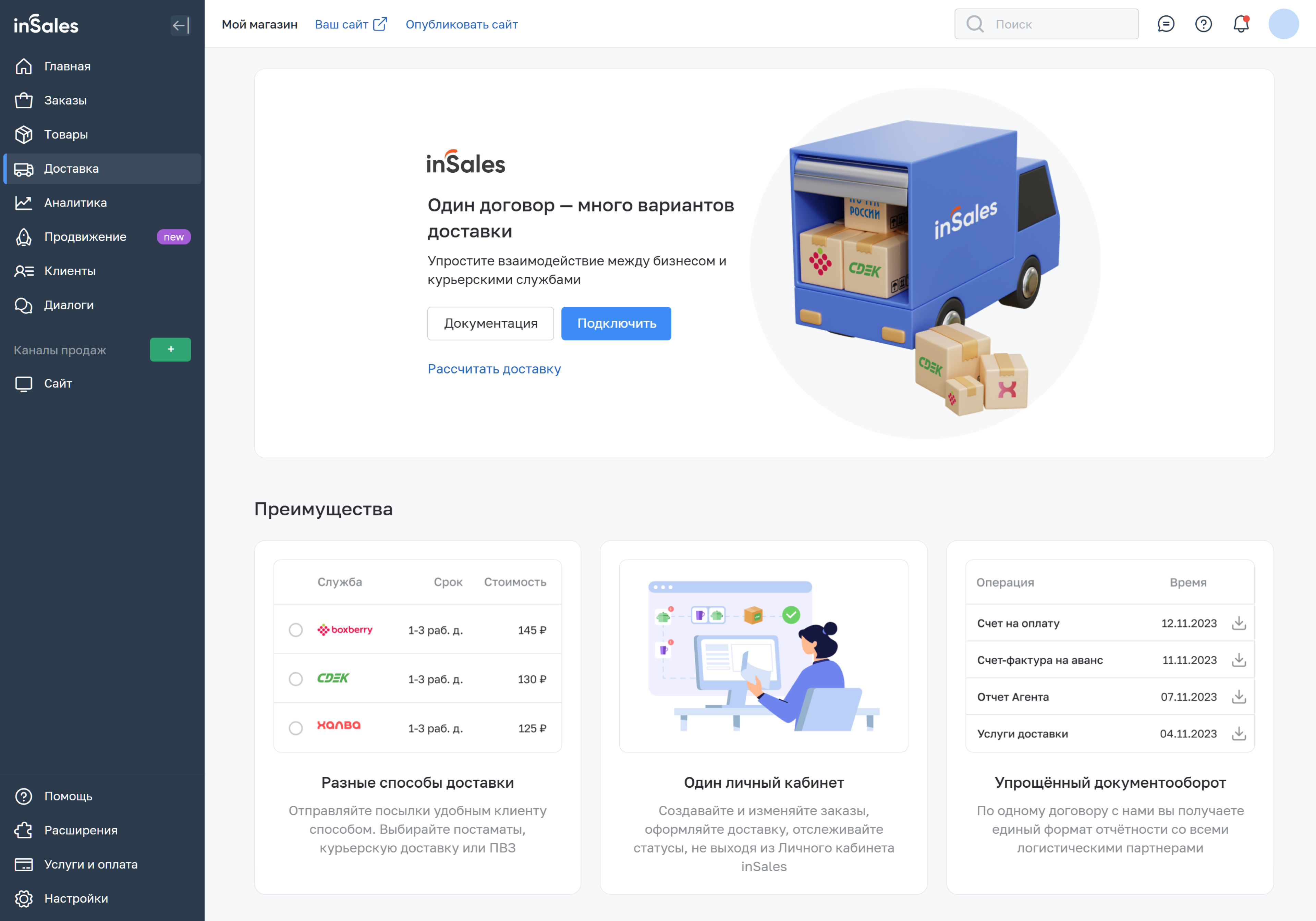 СДЭК и другие службы доставки Через дополнительные сервисы Возможна интеграция, но требует настройки Подключается быстро, расчёт доставки автоматизирован