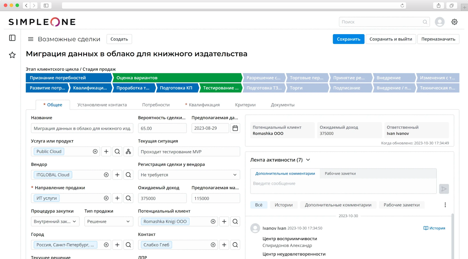 SimpleOne B2B входит в рейтинги лучших CRM CNews и «Компьютерры». Подходит для управления продажами в B2B, особенно если у компании сложный продукт. Платформа помогает управлять разными процессами: продвижением, контентом, работой команды.