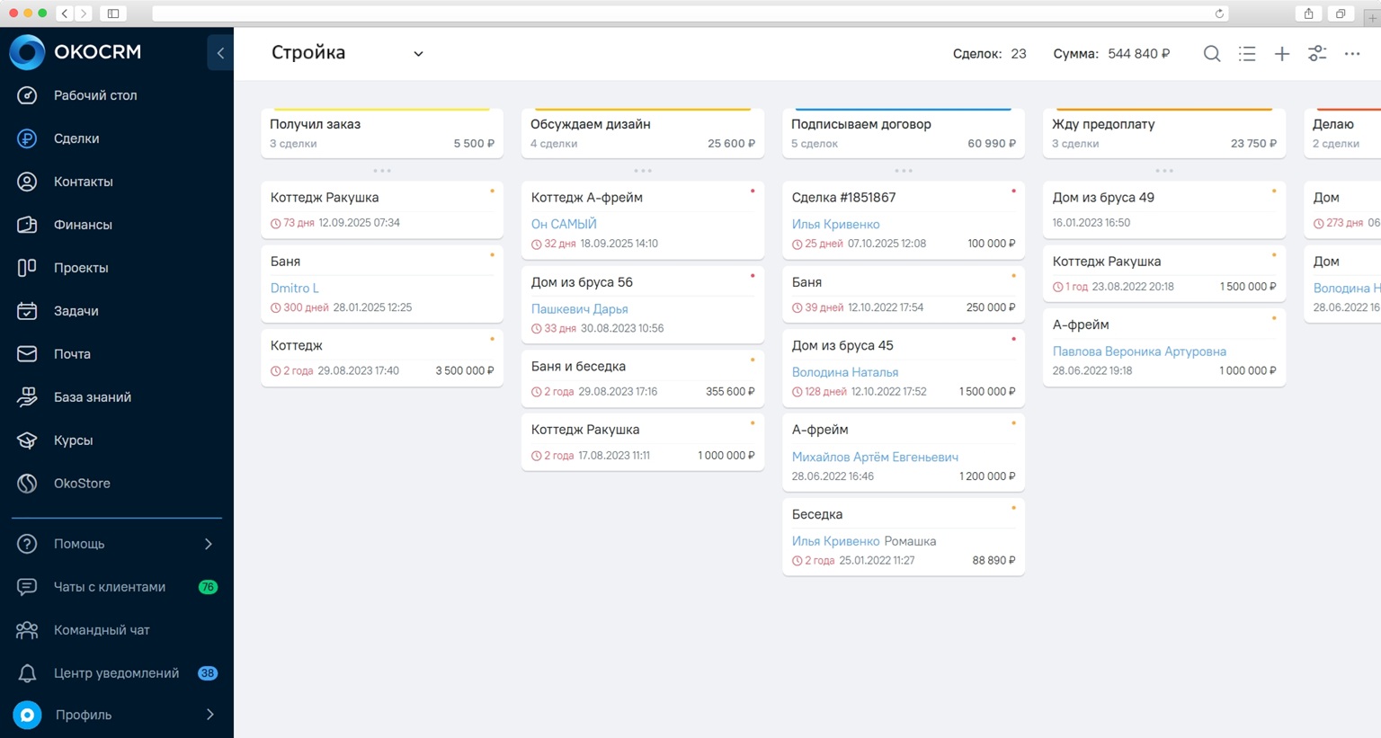 Такие модули есть у всех лучших CRM для бизнеса. Больше на них останавливаться не будем, расскажем только про ИИ-инструменты и фишки каждого продукта. У OkoCRM это: