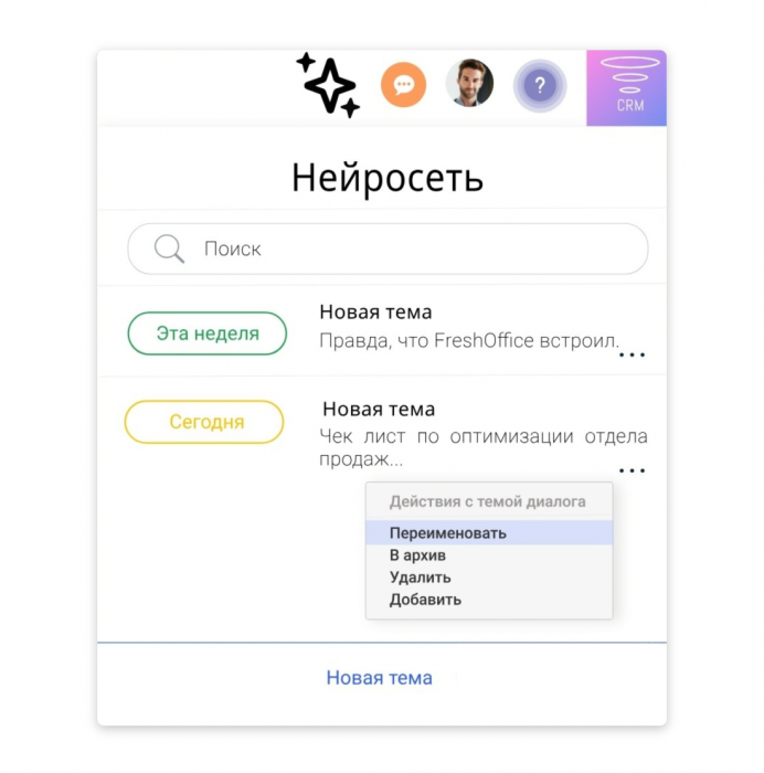 Во FreshOffice ИИ-инструменты добавили в задачи, чат с клиентами и на почту. Встроенный ИИ-ассистент помогает пользователям генерировать любые тексты: для рекламы или работы с клиентами, для соцсетей или имейл-рассылок.