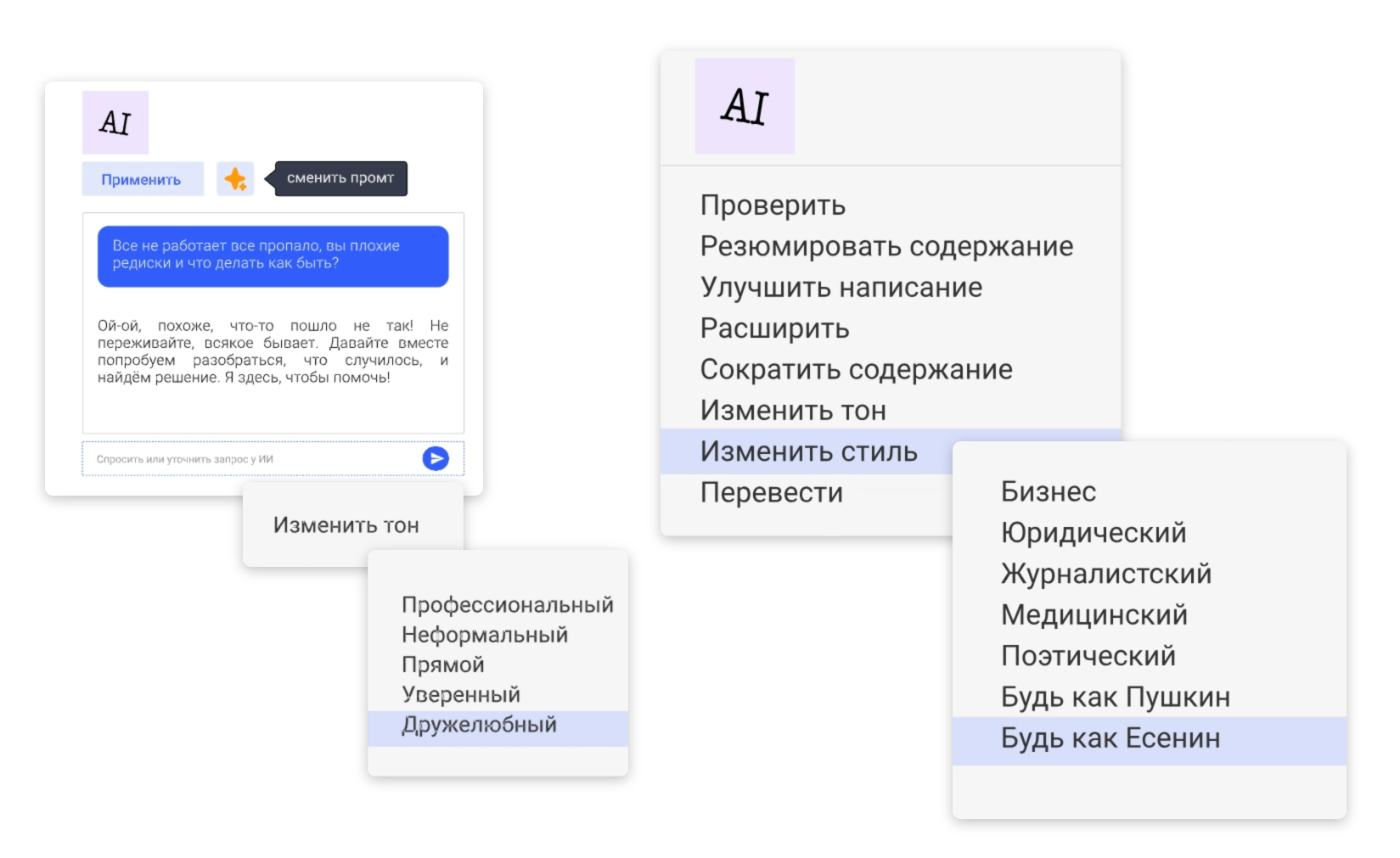 ИИ-инструменты: ИИ-агент, обработка и генерация текста, резюмирование бесед