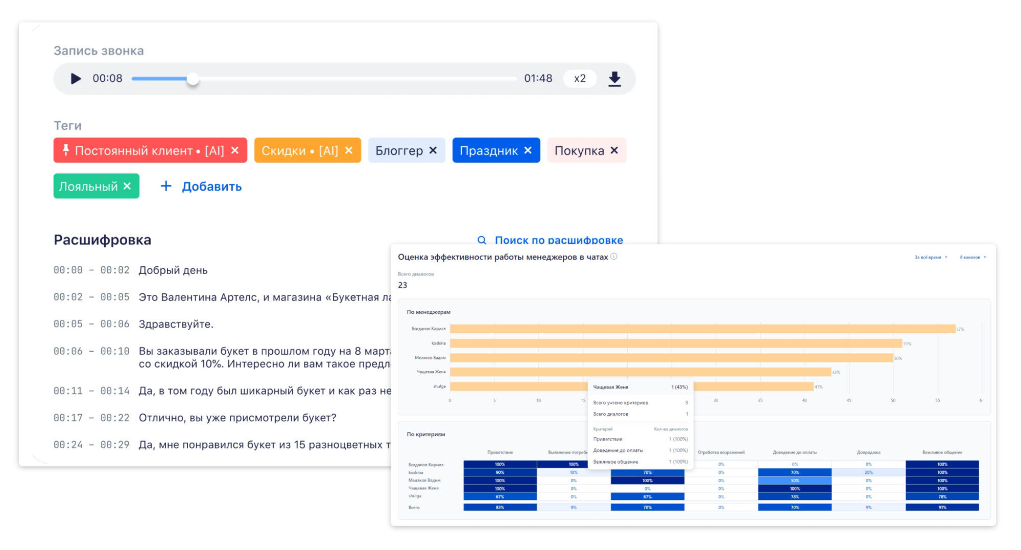 ИИ-инструменты: расшифровка и оценка звонков, заполнение карточек