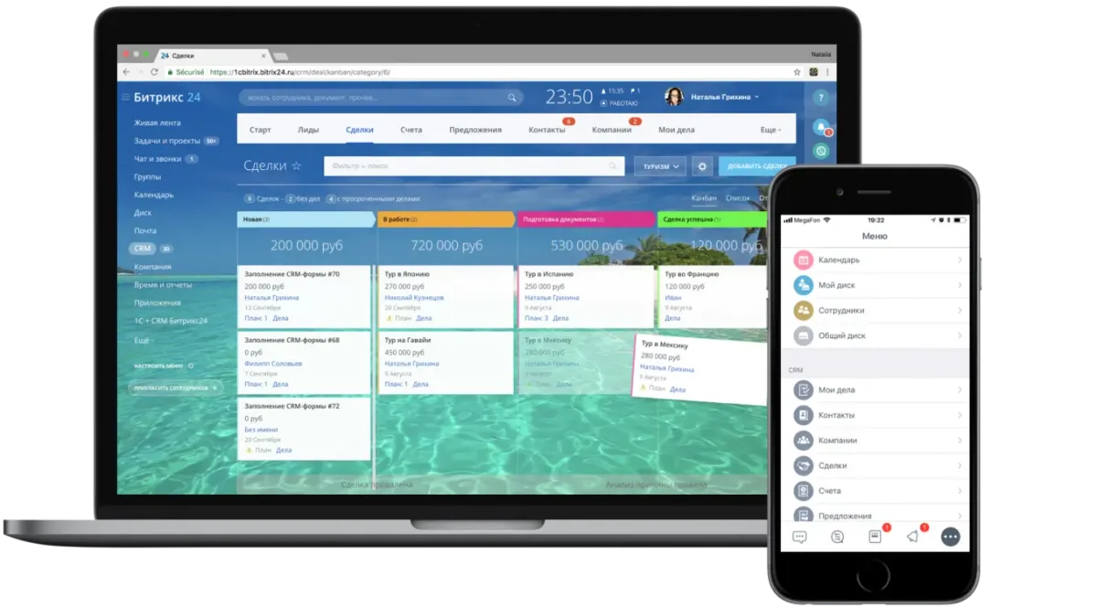 Битрикс24 доступен в браузере, также есть десктопные приложения для Windows, Mac и Linux и мобильные приложения для iOS и Android.