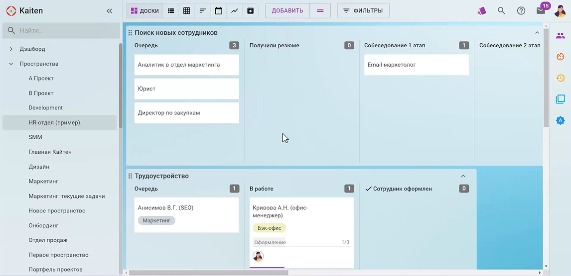 В сервисе собирать доски под разные проекты, настраивать этапы и логику движения задач. Визуализация помогает быстро увидеть, где возникают задержки и как распределена нагрузка, а автоматизации сокращают рутинные действия. Kaiten хорошо подходит для команд, которым важно не просто вести задачи, а выстраивать системную работу и контролировать процессы.